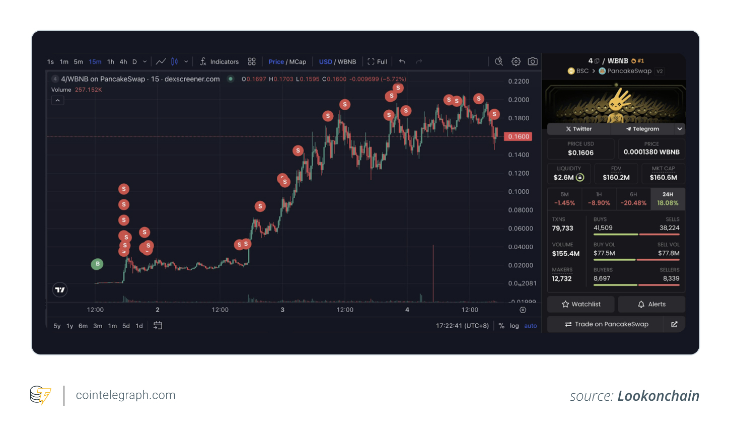 Portföy etrafındaki hareket döngüyü ateşledi. Lookonchain tarafından takip edilen “akıllı para” adresleri 4 tane satın almaya başladı ve bu da tokenı önümüzdeki 24 saat içinde en çok biriken BNB Chain tokenleri arasında yer aldı.